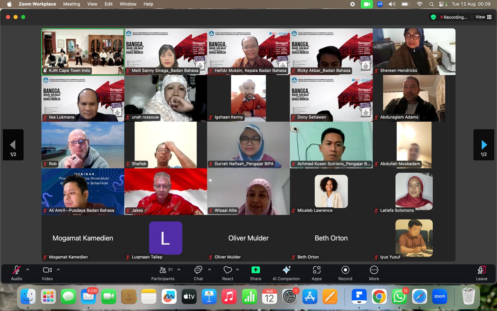 Cape Town, Afrika Selatan, 12 Agustus 2025 –Kelas Bahasa Indonesia bagi Penutur Asing (BIPA) di Konsulat Jenderal Republik Indonesia (KJRI) Cape Town, Afrika Selatan, kembali diselenggarakan. Acara ini dihadiri secara langsung oleh sejumlah pihak, yaitu Menteri Pendidikan Dasar dan Menengah (Mendikdasmen), Abdul Mu’ti; Konsul Jenderal RI di Cape Town, Tudiono; Anggota Dewan Pengarah Badan Pembinaan Ideologi Pancasila, Prof. M. Amin Abdullah; serta Pejabat Fungsi Penerangan Sosial dan Budaya KJRI Cape Town, Daddy Yuliansah.